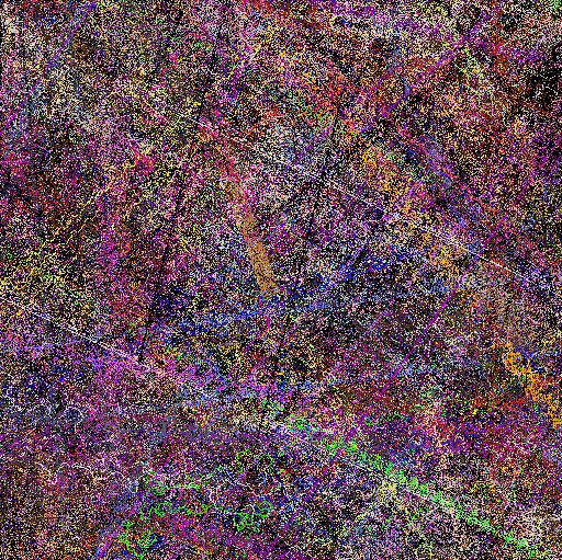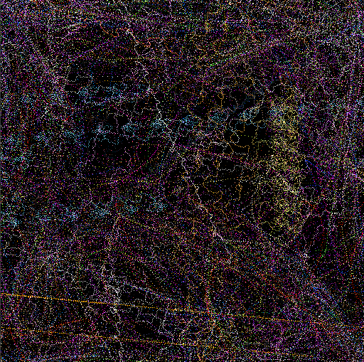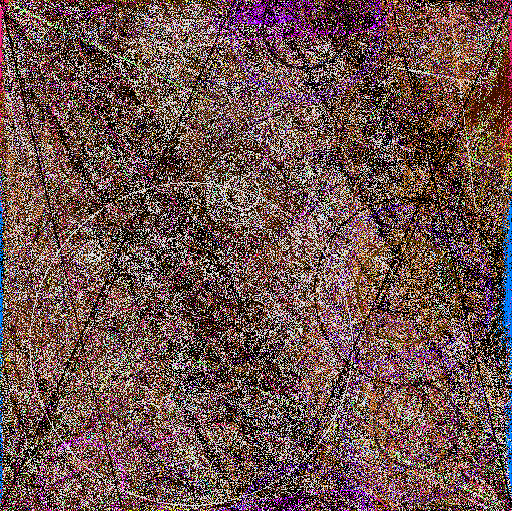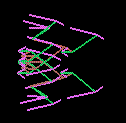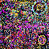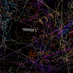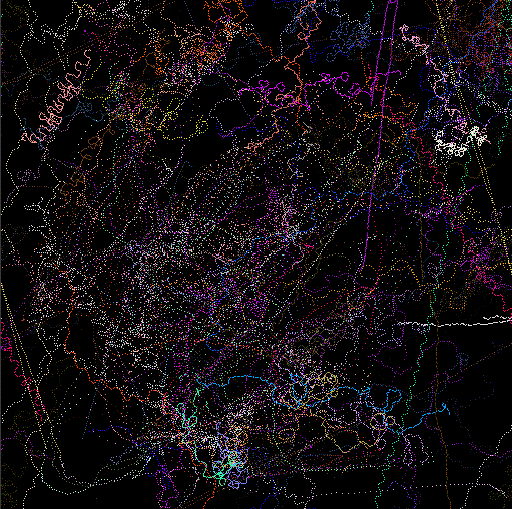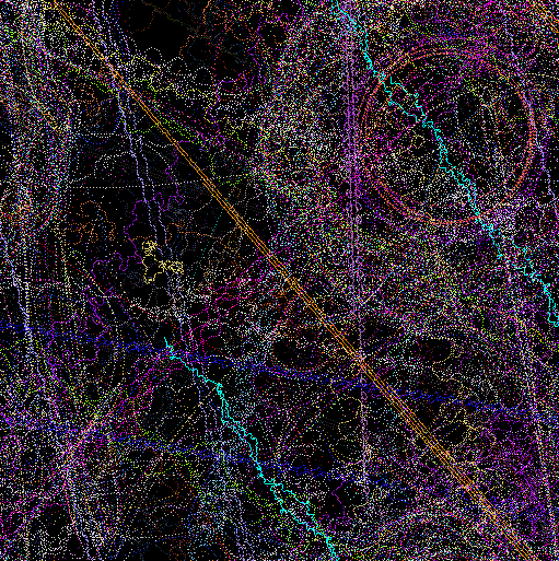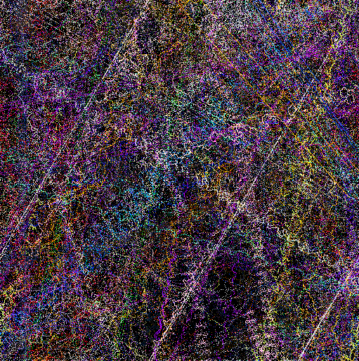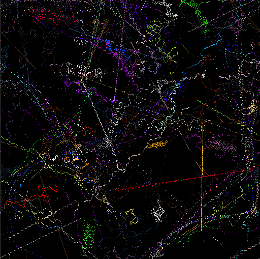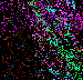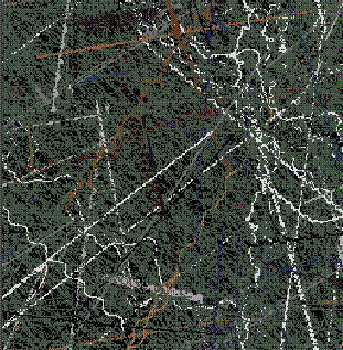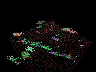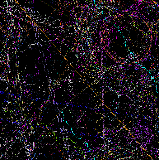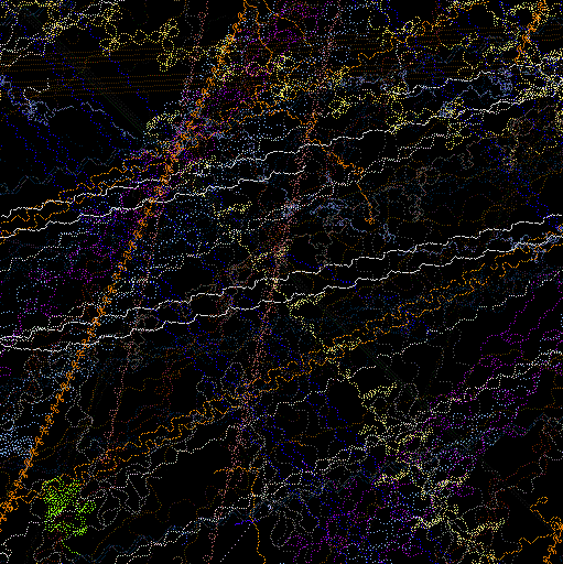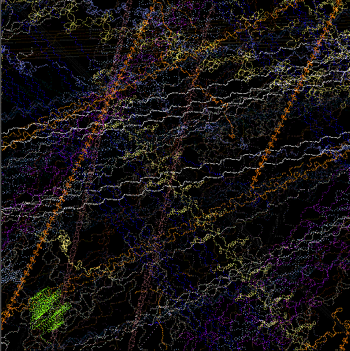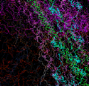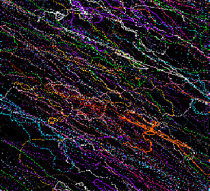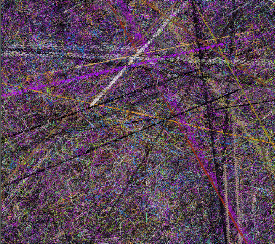 The mural, created as a history of the creatures' movements, is "constructed as a record of the motions of the animals math space. The ground records the passing of animals and then samples a set of images based upon the animals genetic makeup. These colors are then recorded in the mural for display," says Lovell. These images are projected as they manifest becoming a visual aspect of the installation, providing another link between the viewer and cyber reality.